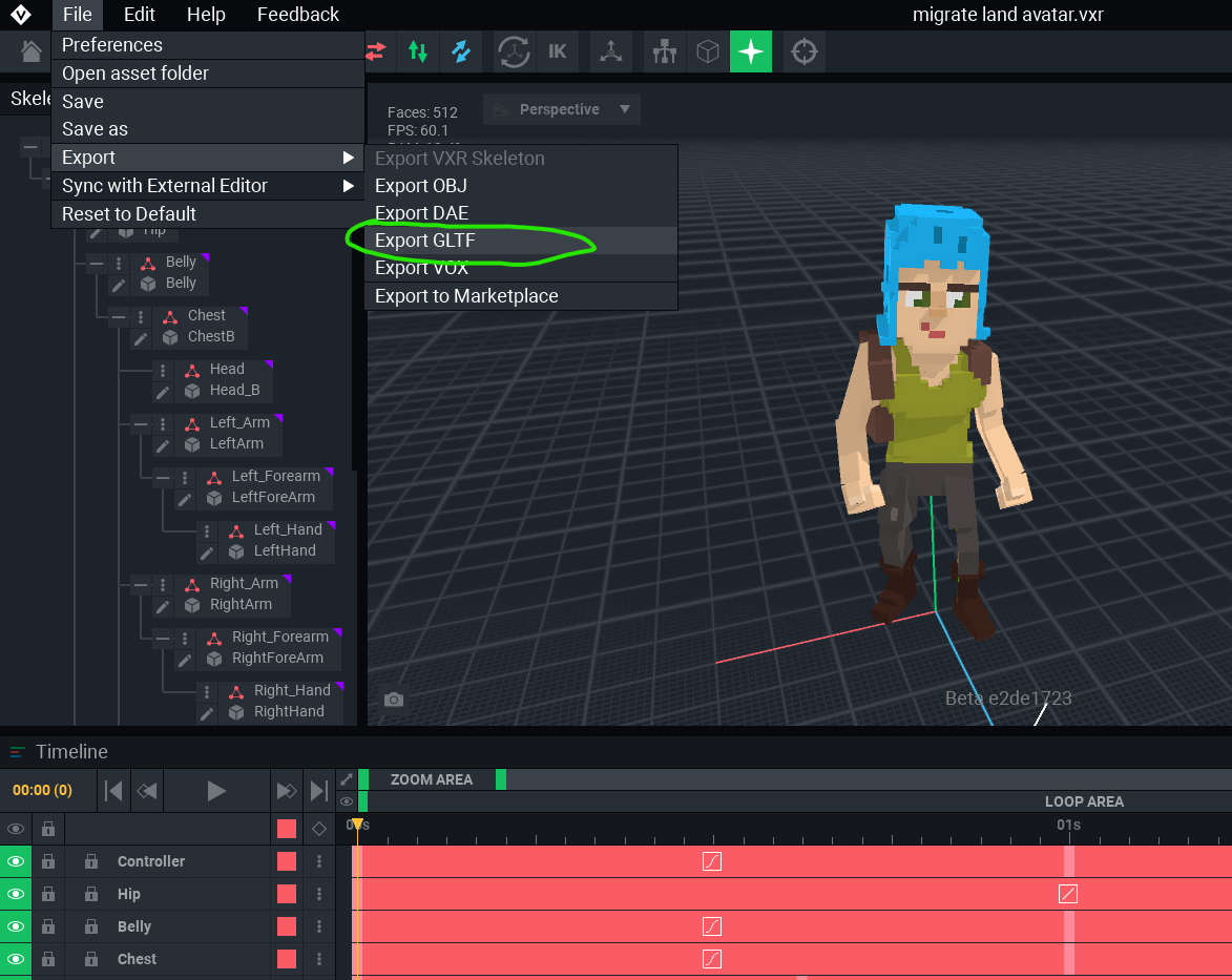 In VoxEdit have your ASSET open. Go to : File > Export > Export GLTF and place it somewhere easy to find