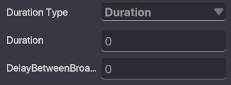 Duration Type Once - one time Duration - set amount of time in seconds and delay between broadcasts Forever - broadcast forever with a delay between broadcasts