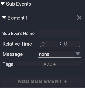 Sub Events are ‘children’ of the primary Timed Event and will trigger relative to the elapsed time of the parent.