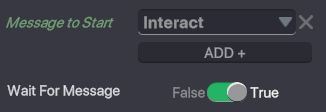 If Wait for Message is set to ‘TRUE’, a message can be added that can be used to trigger the start of the Behaviour.If Wait for Message is set to ‘FALSE’, the Behaviour will start when the experience loads.