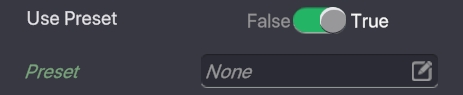 True - the Preset field will appear so you can open the popup window and select from one of your Presets, which already have defined properties.