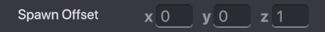 Spawn Offset - set the location of the spawned object in relation to the Spawner using X, Y, and Z coordinates.