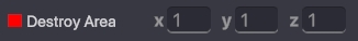 Destroy Area - Determines the area in which the specified blocks and/or assets should be destroyed. This parameter is visualised with a red cube Gizmo that adjusts as you enter new X, Y, and Z values.
