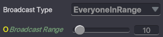 Broadcast Range (slider) - move the slider or enter a distance in blocks from the anchor point of the object