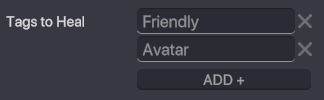 Tags to Heal - Add or remove tags that the Object will detect to heal.