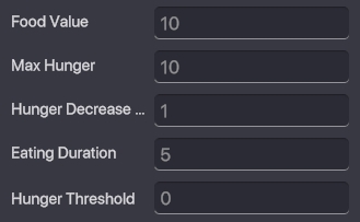 Food Value - Determines the amount of hunger your Object earns from eating a target.