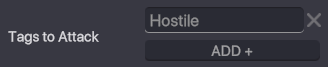 Tags to Attack - Defines which tags the Object will chase and attack if within its range.