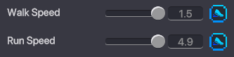 Walk Speed (slider) - Determines the amount of blocks travelled per second by your Object when walking.