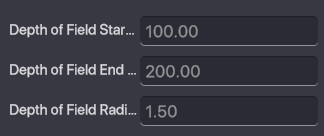 Depth of Field Start - Determines how far from the player the 'depth of field' effect will be visible. Higher values set the depth of field to start further away. Depth of Field End -