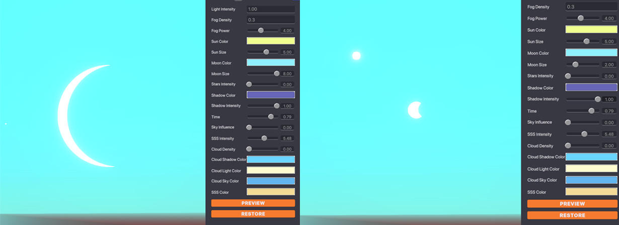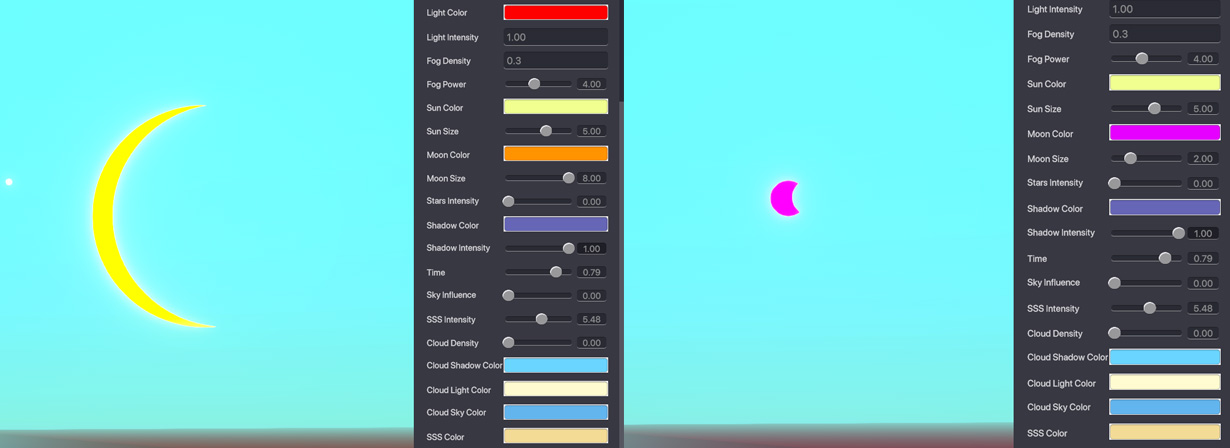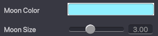 Moon Colour - Allows you to change the colour of the moon. Moon Size - Determine the size of the moon in the sky.