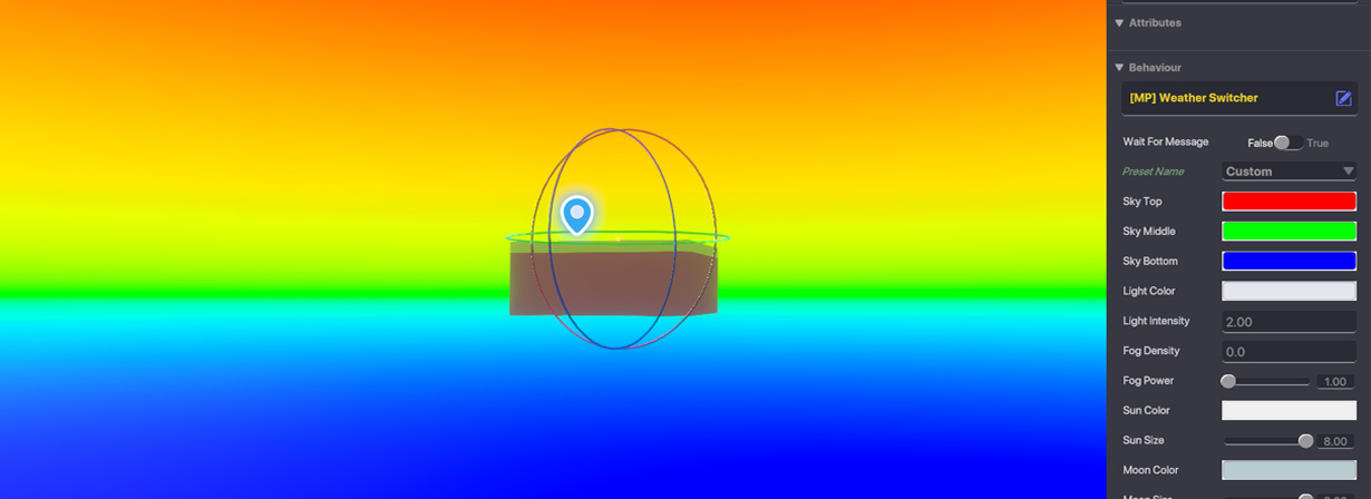 There is also the option to create a Custom Weather Switcher. When this is selected, a range of options to customise the colour, light, sun position, moon position, and star intensity will become available.
