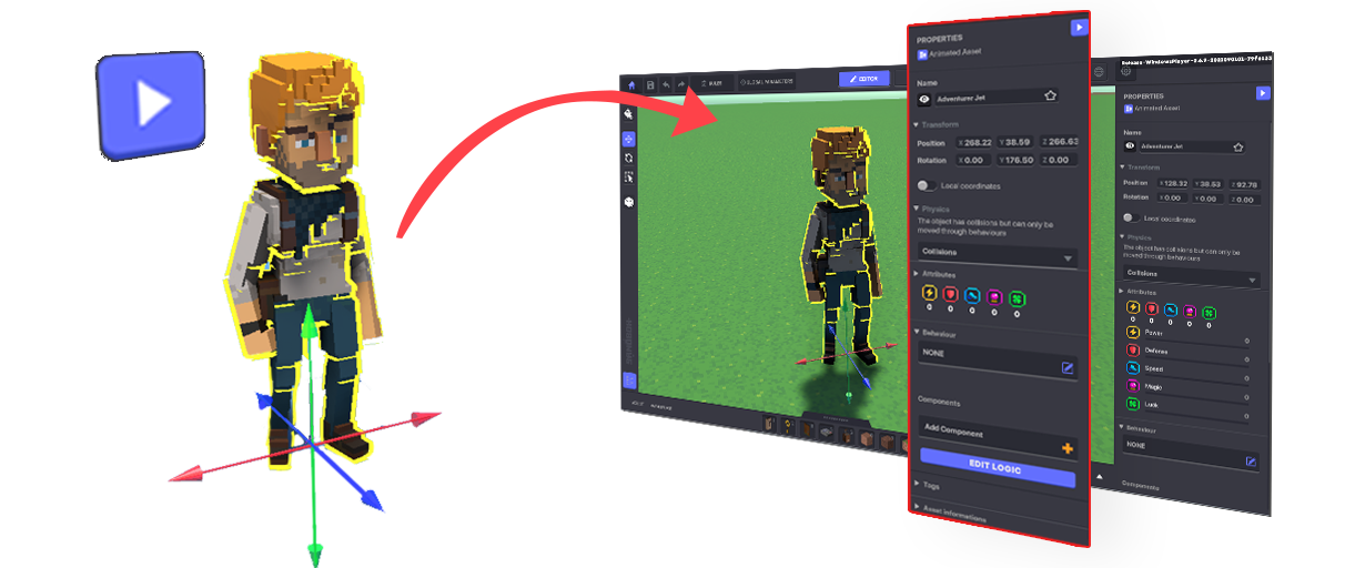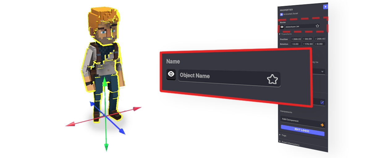 Placing an asset as an object in your Experience allows you to customise it in the Properties Panel by: