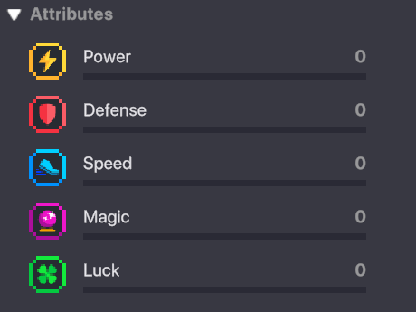 ATTRIBUTES UPDATE COMING SOON The Attributes system, influenced by Catalysts & Gems, will be updated very soon, along with this documentation.