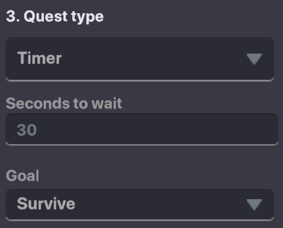 Set the Seconds to wait as the timer and select Survive from the Goal dropdown.