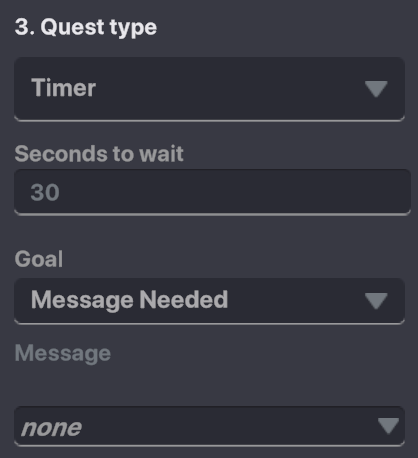 This is the most commonly used Quest type due to its flexibility. There are multiple ways to send a message through the player's actions.