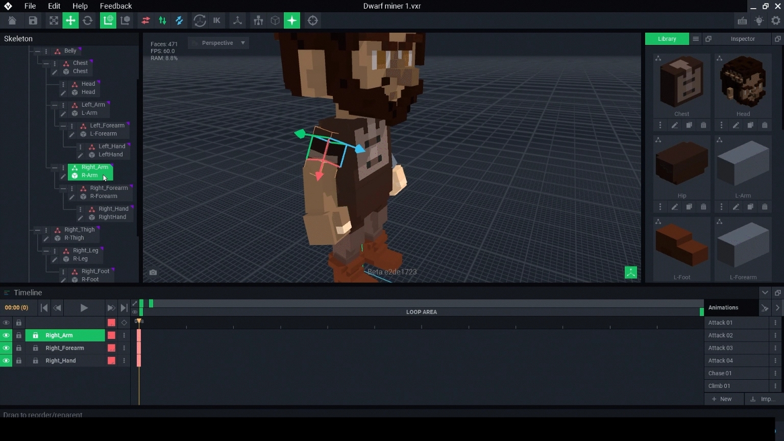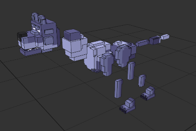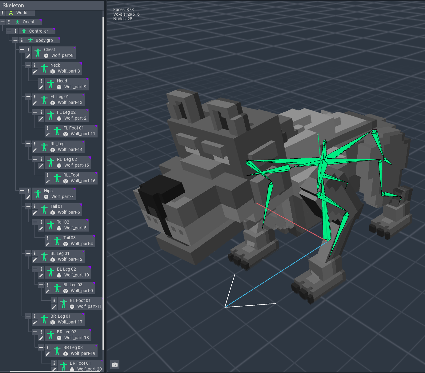 The entity below is one of many VoxEdit Templates, broken down into its models. The joints on a real animal help visualise all of its parts, which will become separate models. The joints also help visualise where the pivot point on each model should be, knowing how a model should move and rotate.