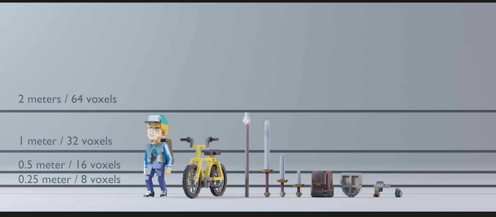 Everything in The Sandbox is built to the same scale, with few exceptions. Game Maker and VoxEdit are not designed for sizing assets up and down, so plan carefully.