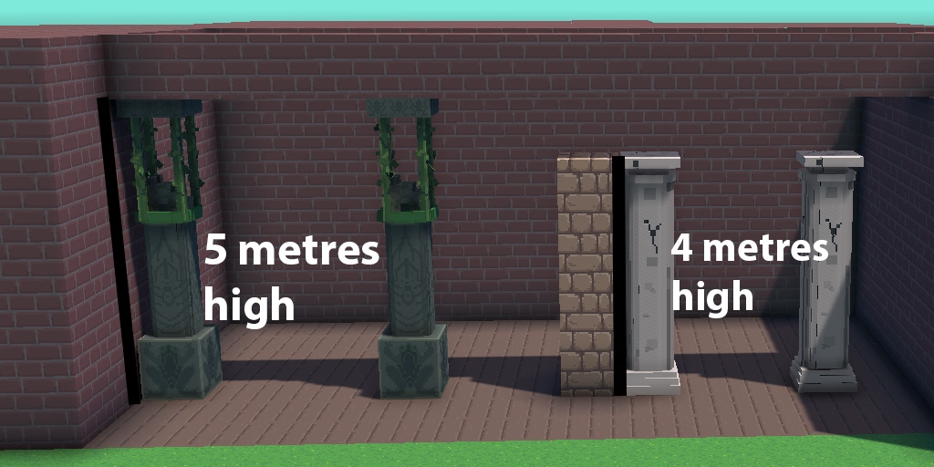 Columns will be more effective with a 1x1 meter base (32x32 voxels) and a height of at least 4 blocks (128 Voxels).