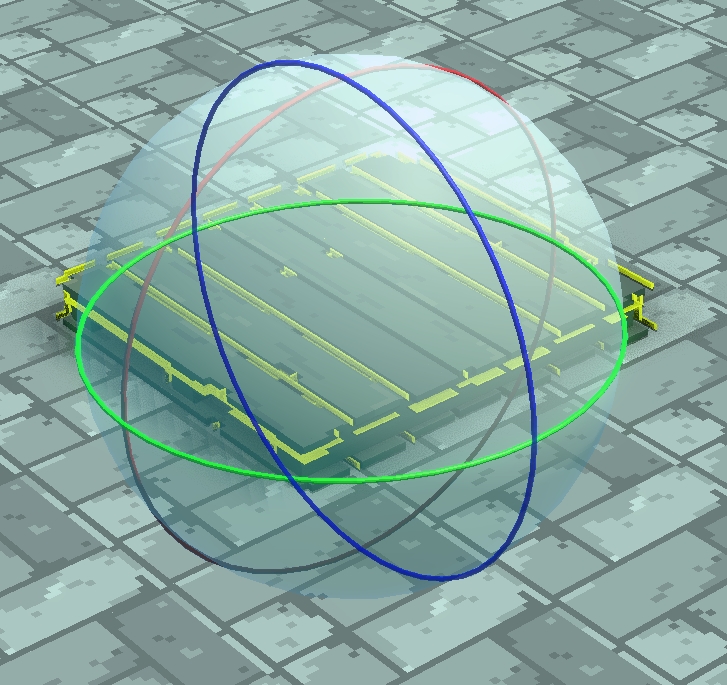 ギズモと呼ばれる3つの円が選択したアセットの周りに表示されます。各々の円は回転する軸の方向によって異なる色で表示されています。
