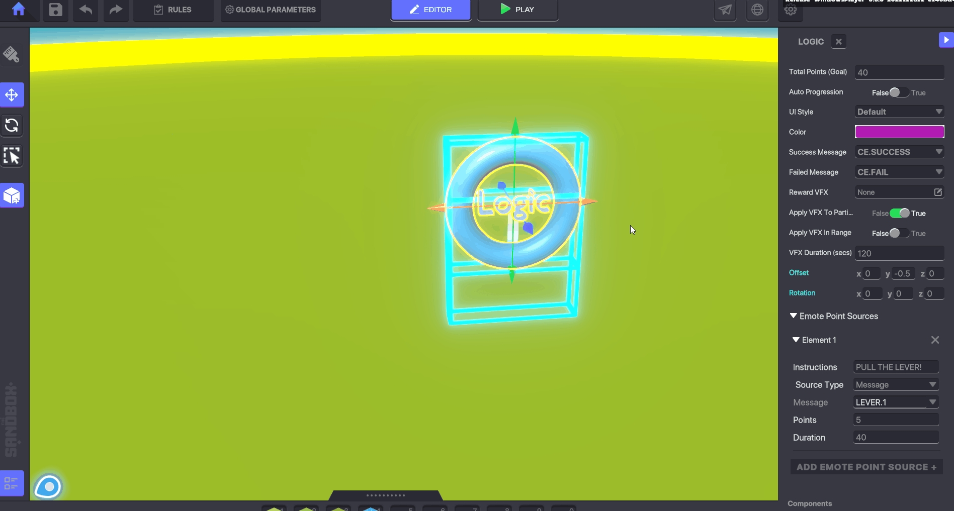 エモートやメッセージと一緒に使用することのできるこのビヘイビアはコレクタークエスト、レース、ダンスバトル、謎解きなどのマルチプレイヤーゲームを作成する際に様々な使い方のできるフレキシブルなツールです。