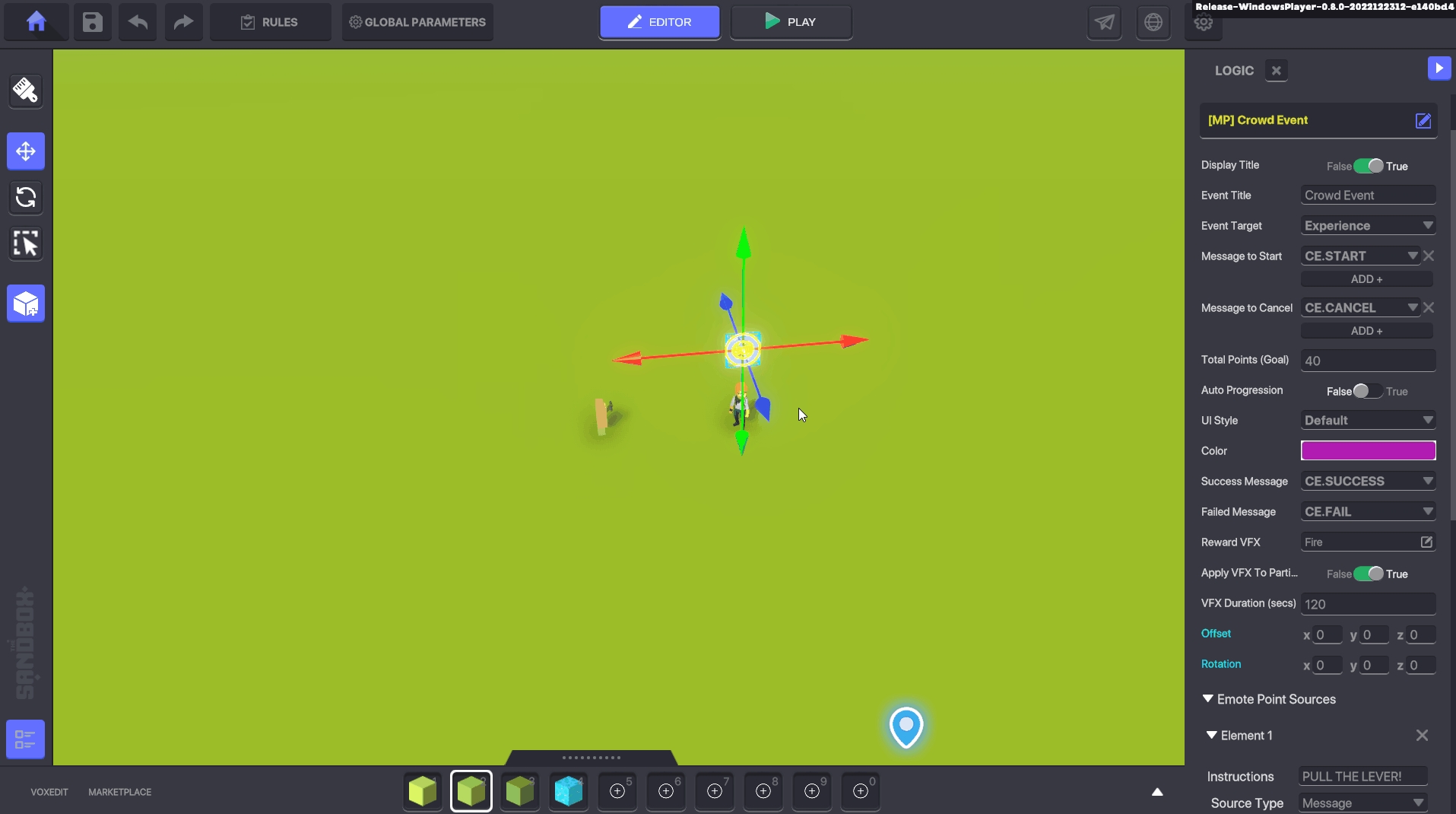 Experience(体験)を選択するとイベントは体験内のすべてのプレイヤーから見えるようになり、使用可能になります。そしてすべてのプレイヤーがポイントを獲得することができ、どの場所からもイベントの進行に貢献することができます。