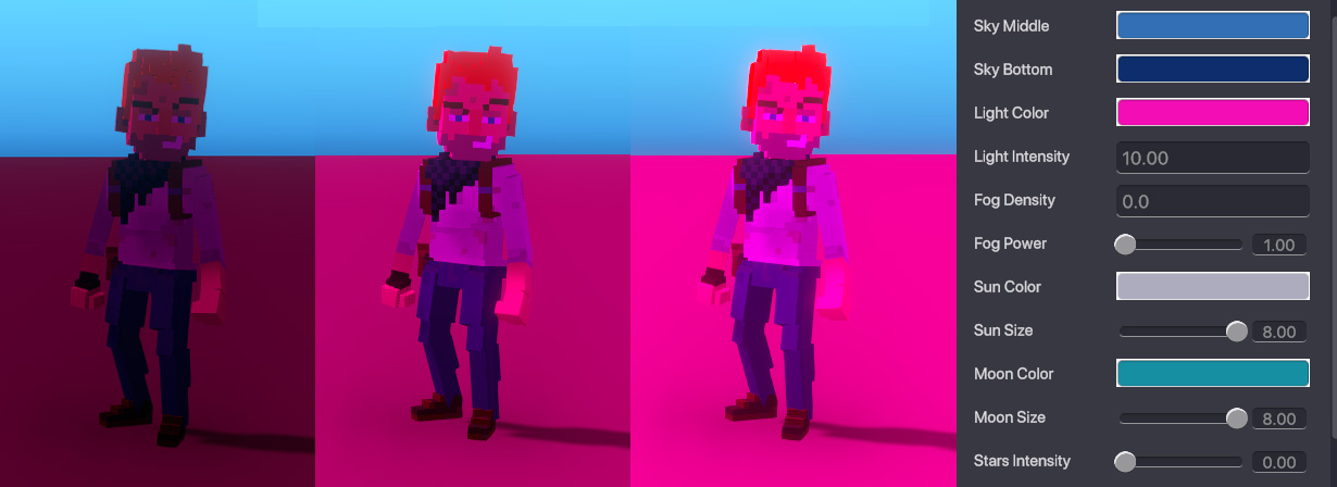 スカイのパラメーターを使用してスカイボックス内の異なるエリアの色を設定することができます。