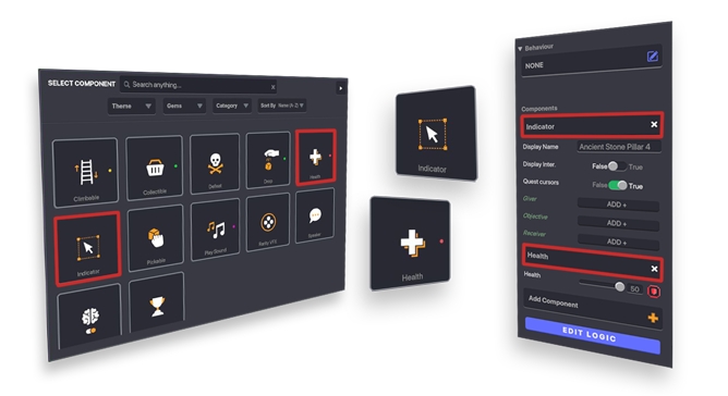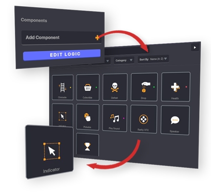 Edit Logic を開くことでIndicator のコンポーネントの中にオブジェクトの動きをより細かく設定するためのオプションが表示されていることがわかります。