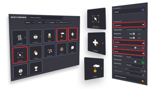 例えばDrop のコンポーネントのような3つ目のコンポーネントを追加してユーザーをオブジェクトまで誘導するだけではなくオブジェクトを破壊して何かを落としたり、発見やゲームを進めていくことの楽しみを体験を通じて感じてもらうことができます。