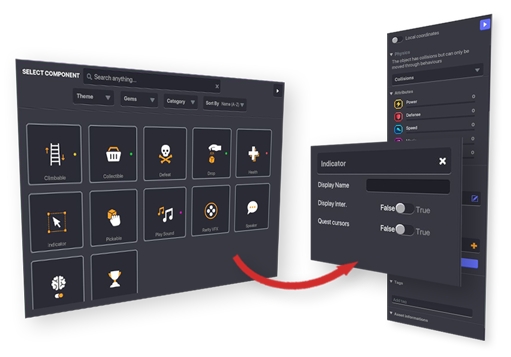 オブジェクトに使用したいコンポーネントを選択してください。ここではIndicator(インジケーター)を選択します。