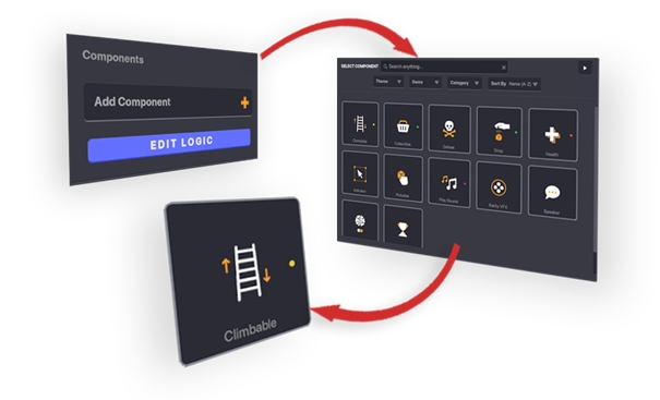 登ることが可能なオブジェクトを持つことはプレイヤーにとって体験の中でも非常に重要なポイントです。Climbable のコンポーネントを組み合わせることで体験の中での行動範囲を最大限まで広げることが可能になります。