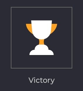 Victory のコンポーネントはプレイヤーがバトルに勝った際にトリガーされるように設定します。 プレイヤーがゲームに勝ったり、ボスを倒したり、制限時間内にゴールした時に使います。