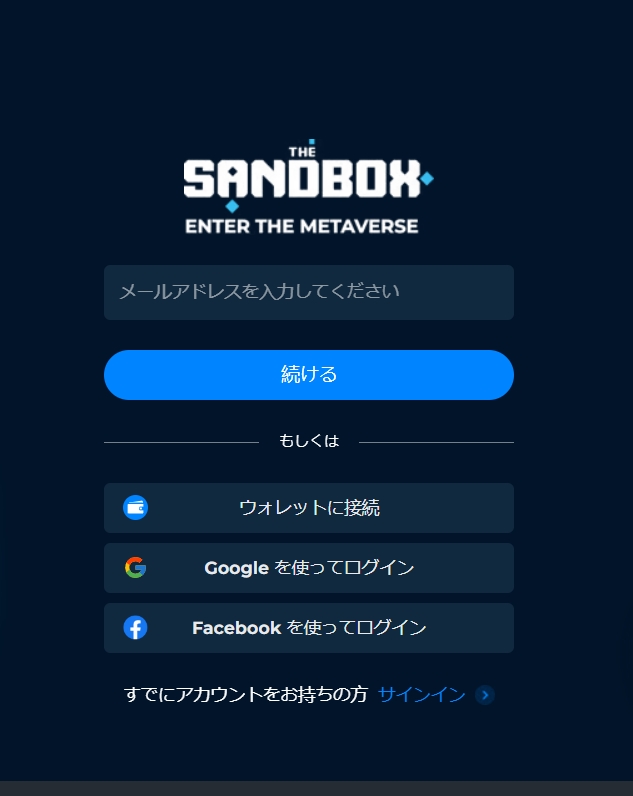 ウォレットの設定に関しては以下のページより詳細をご確認ください。https://sandboxgame.gitbook.io/the-sandbox/accounts-and-wallets/how-to-register-on-the-sandbox.