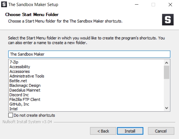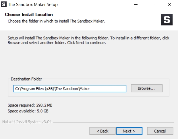 The Sandbox Maker をインストールする場所を選択します。