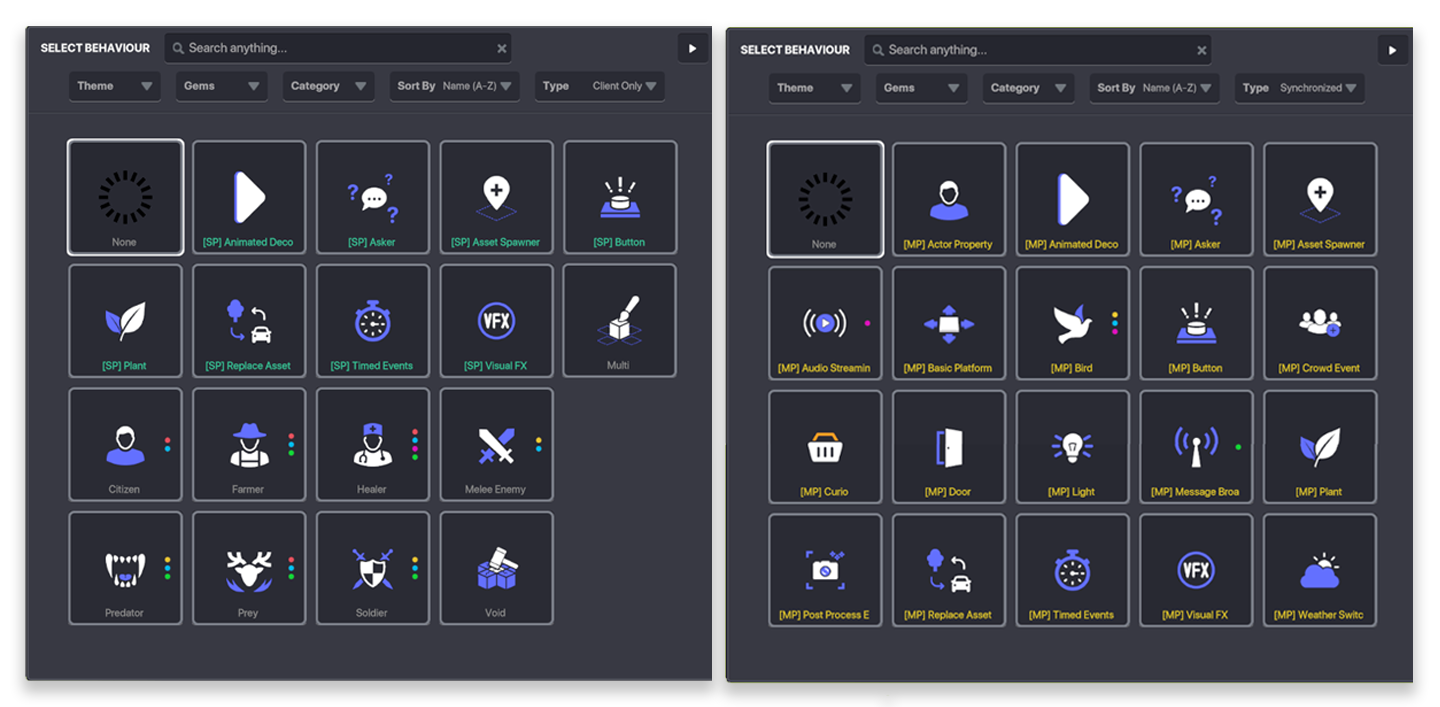 0.8 のアップデートではClient only[SP:シングルプレイヤー]とSynchronized[MP:マルチプレイヤー]でそれぞれ異なるビヘイビアとコンポーネントが新たに導入されました。