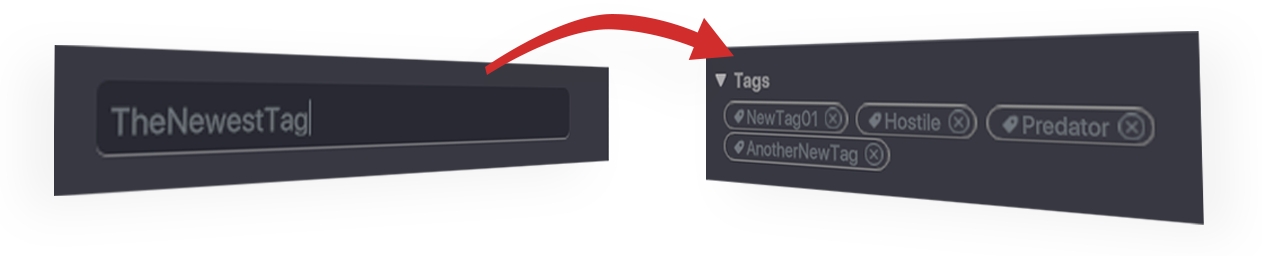 識別するだけではなく、アイデンティティとしても使用することができます。タグは体験内でオブジェクトが何として見られてるかを変更することができます。2つの同じオブジェクトがタグ次第で全く異なるものとして識別され、反応も異なるように設定することが可能になります。