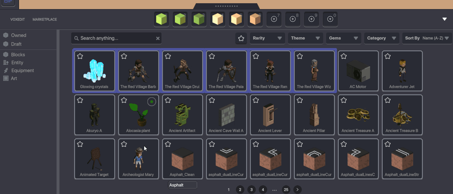 Art(アート):「Art」とタグ付けされているアセットのみが表示されます。Game Maker 上では機能性を持たない、レアなデザインの装飾品やコレクターアイテムなどを指します。