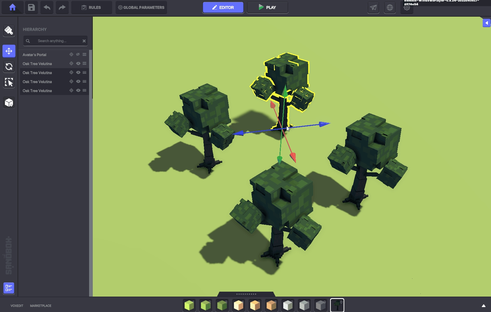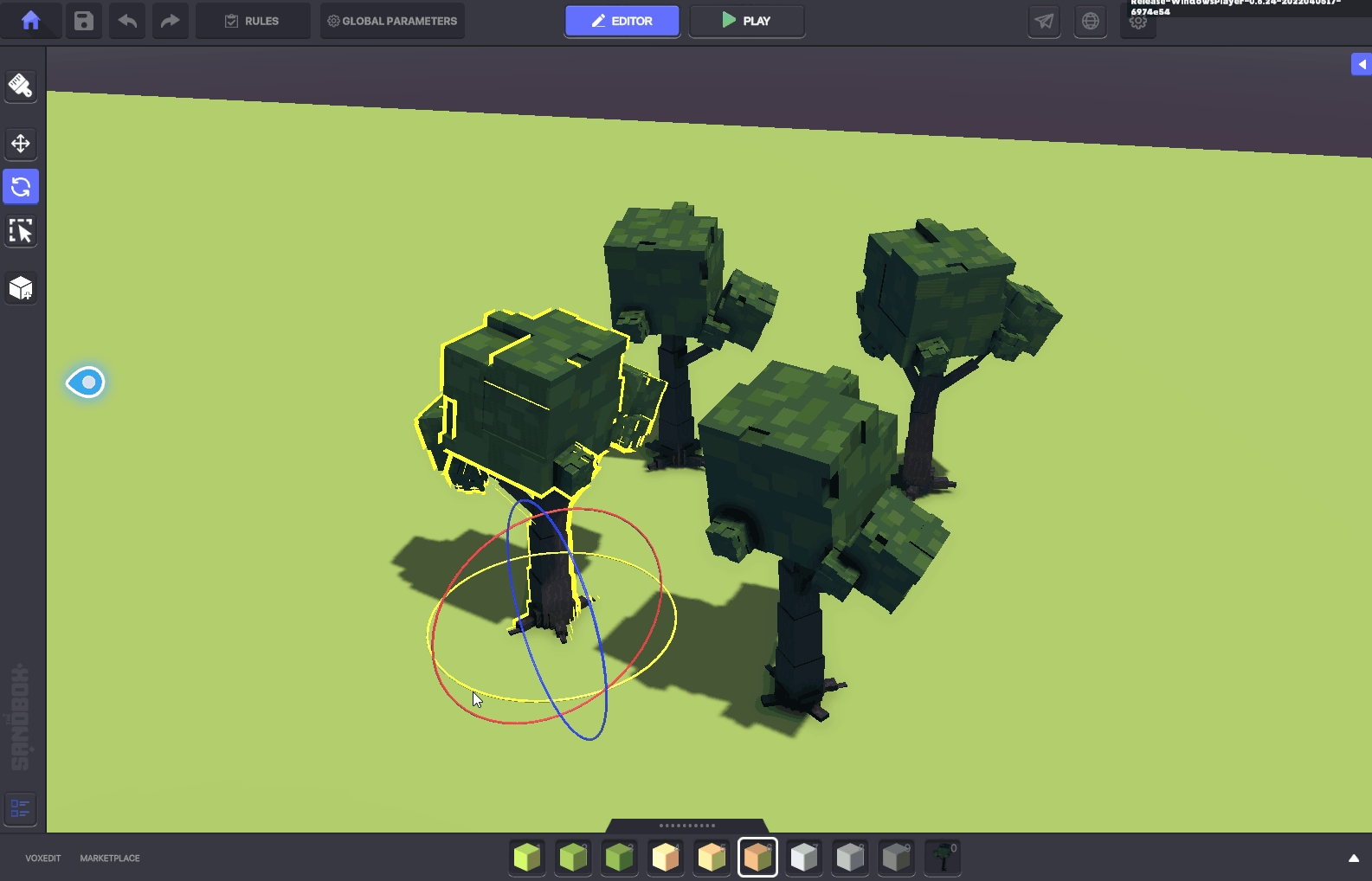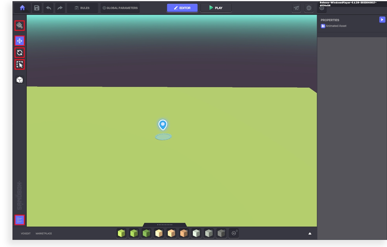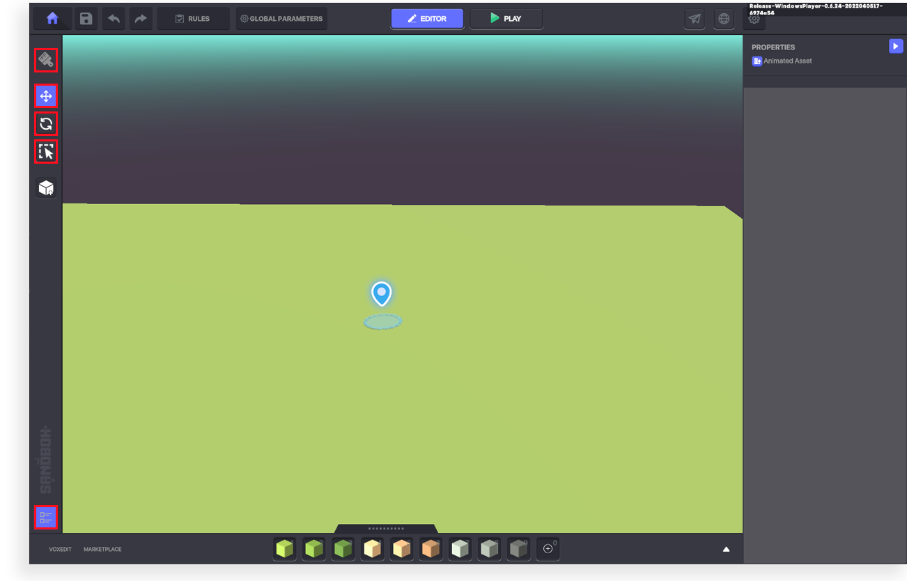 シーンの中でブロックやアセットを配置したり調節するのに使用します。