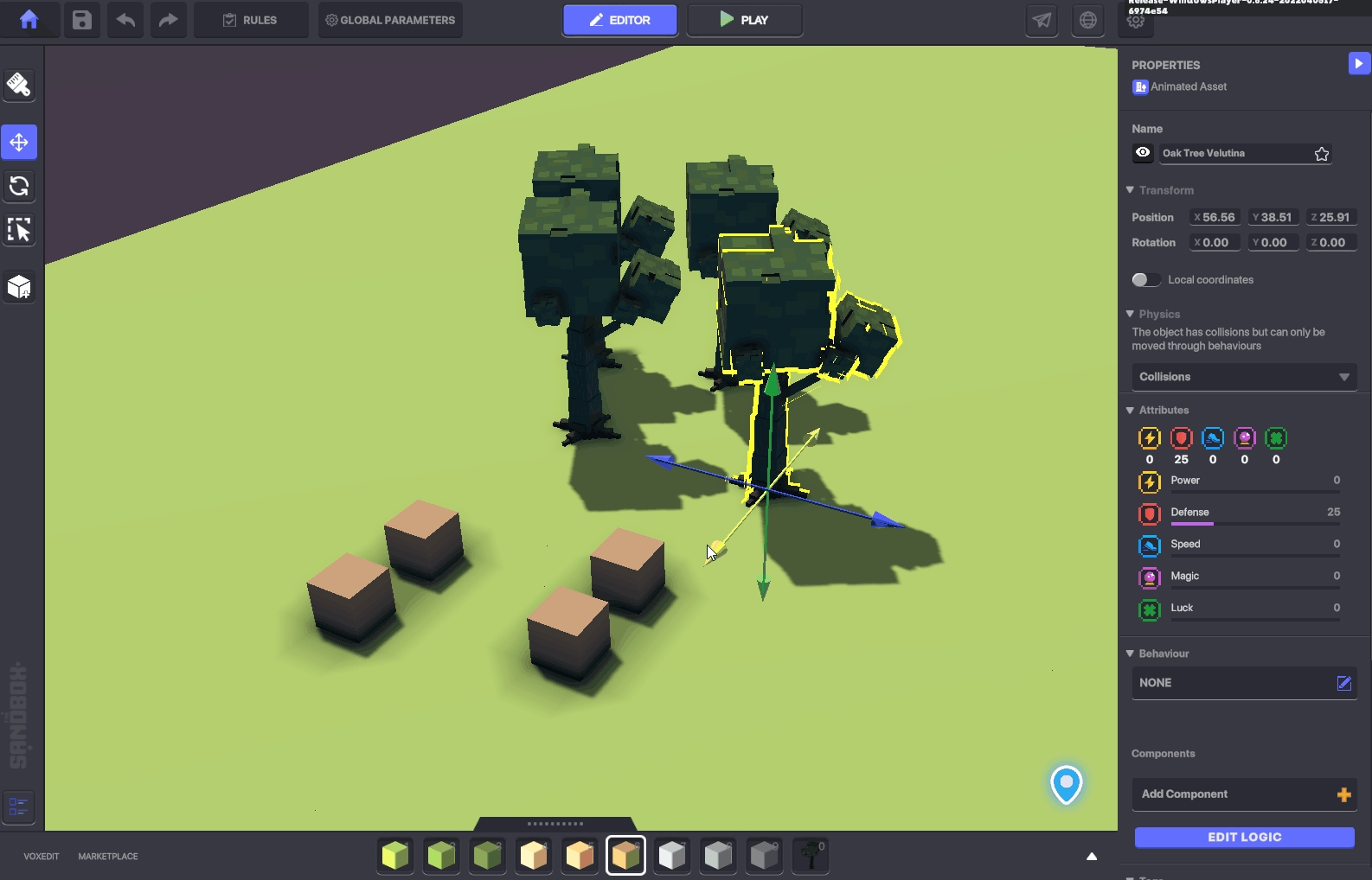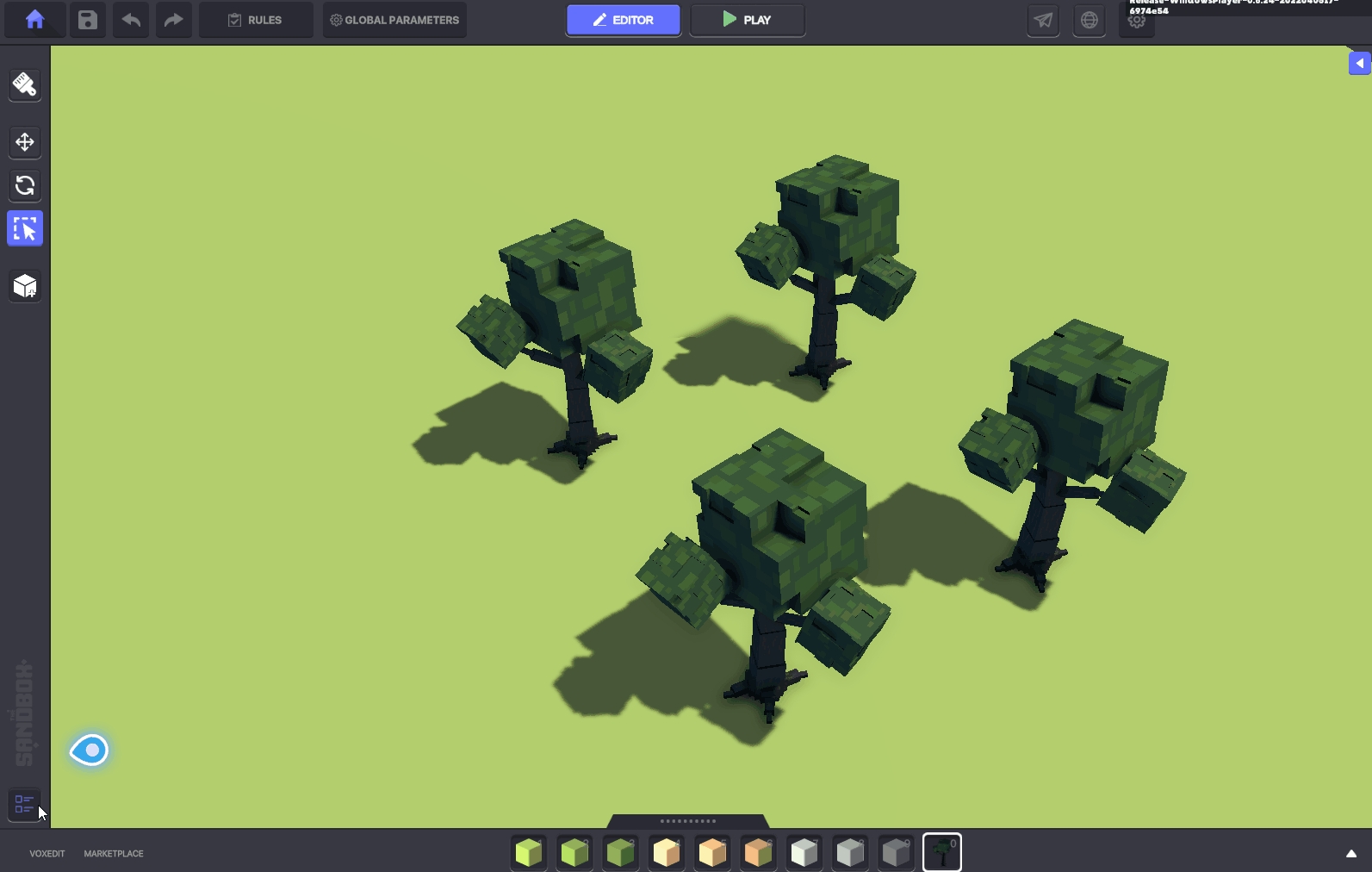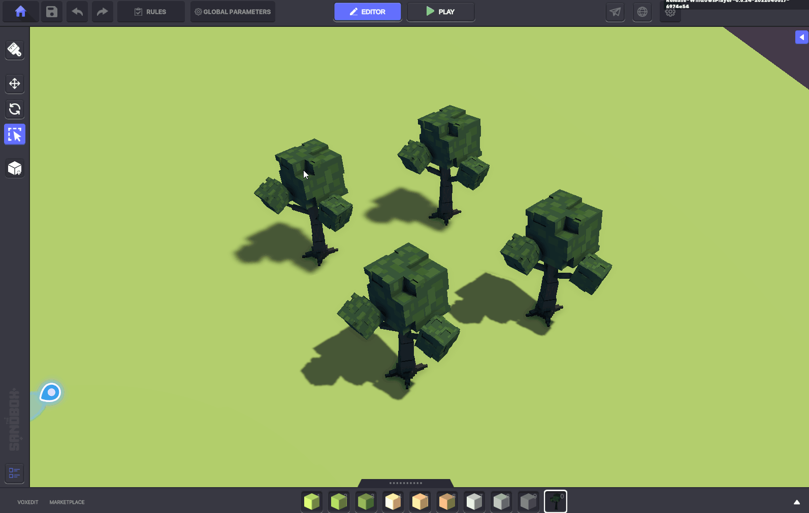 シーンの中でブロックやアセットを配置したり調節するのに使用します。