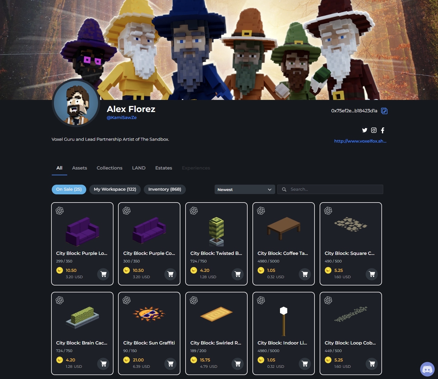 Your Public Profile is a powerful tool to represent yourself in the community and showcase content you've created, earned, or purchased. When members of The Sandbox visit, they can find ways to contact you through social media links you include.