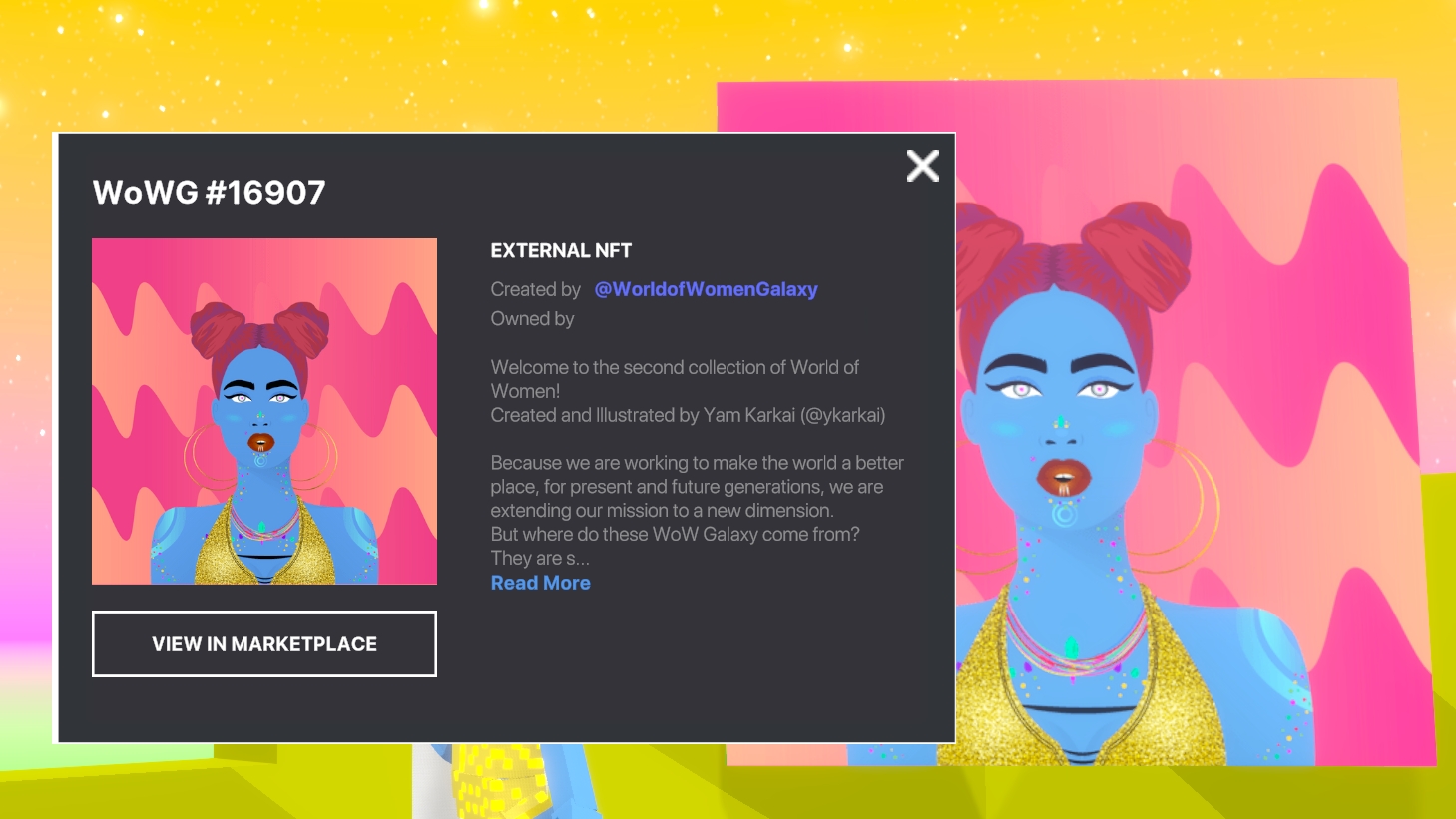 NFT Details Display のコンポーネントはVoxEdit 内でThe Sandbox 向けに制作されたすべてのNFT及びフレームアセットに表示されている外部のNFT に使用することができます。ビジターはブラウザを通じてThe Sandbox もしくはOpenSea のマーケットプレイスにリダイレクトされます。
