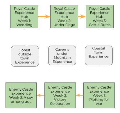 This method requires communication with your community about when the next "chapter" of your story will be released. You can tell linear or branching stories and include hubs or other types of Experiences that are not directly in line with the story, but match the theme and refer to your lore, ethos, etc.
