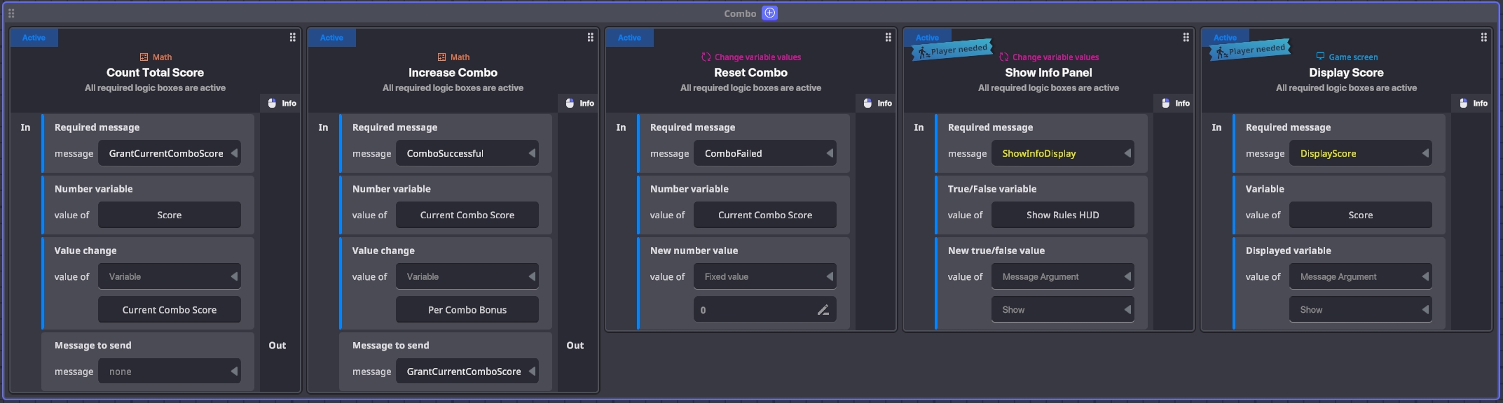 A Combo will add up a score on each consecutive interaction, once a different interaction is performed, the score will reset.