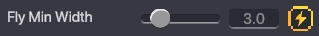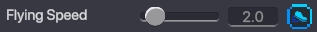Flying Min. Width - プレイモード中に旋回の中心となるオブジェクトのピボットポイントからの最小距離を設定します。このパラメーターは小さい青色のギズモで視覚化され、スライダーを動かしたり、数値を変更して調節できます。