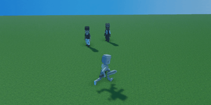 Walking Zone - オブジェクトが非攻撃的に歩く範囲を設定できます。ブロックの場合は一つずつ登ったり下りたりします。 このパラメーターは水色のキューブのギズモで表示され、X、Y、Z 軸に入力する数値によって調節ができます。