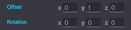 Offset とRotation - X、Y、Z 軸の座標を使ってプレイヤーのアバターに関連したVFX の位置や回転をカスタマイズできます。 ヒント X、Y、Z 軸すべてが0 に設定されている場合、VFX はアバターの足元に表示されます。 ヒント アバターの背の高さはそれぞれ異なります。X=0、Y=2、Z=0 の場合、VFX は中型人間のアバターの頭上に表示されます。