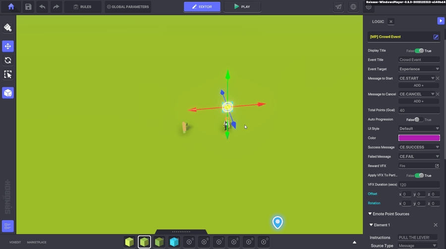 ADD EMOTE POINT SOURCE + - 前のエレメントをクリアしたり、前のエレメントの有効時間が過ぎた後にトリガーする固有の変数値を持った他のエレメントをCrowd Event のビヘイビアに追加できます。