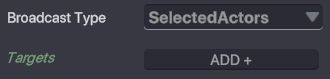 SelectedActors - メッセージを送信先となる特定のオブジェクトを選択できます。 Targets - メッセージを送りたいオブジェクトを追加したり削除できます。(必ず体験内に配置してください。)