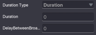 Duration Type Once - 一度だけ Duration - ブロードキャスト間の時間を秒単位で設定できます。 Forever - 永遠にブロードキャストします。