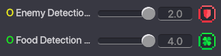 Food Detection Range (slider) - オブジェクトがFood Tags を検知する範囲を設定できます。