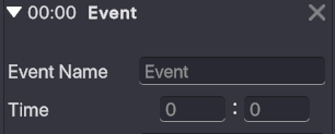 Event Name - イベントの名前を設定できます。 Time - イベント時間を分と秒単位で設定できます。